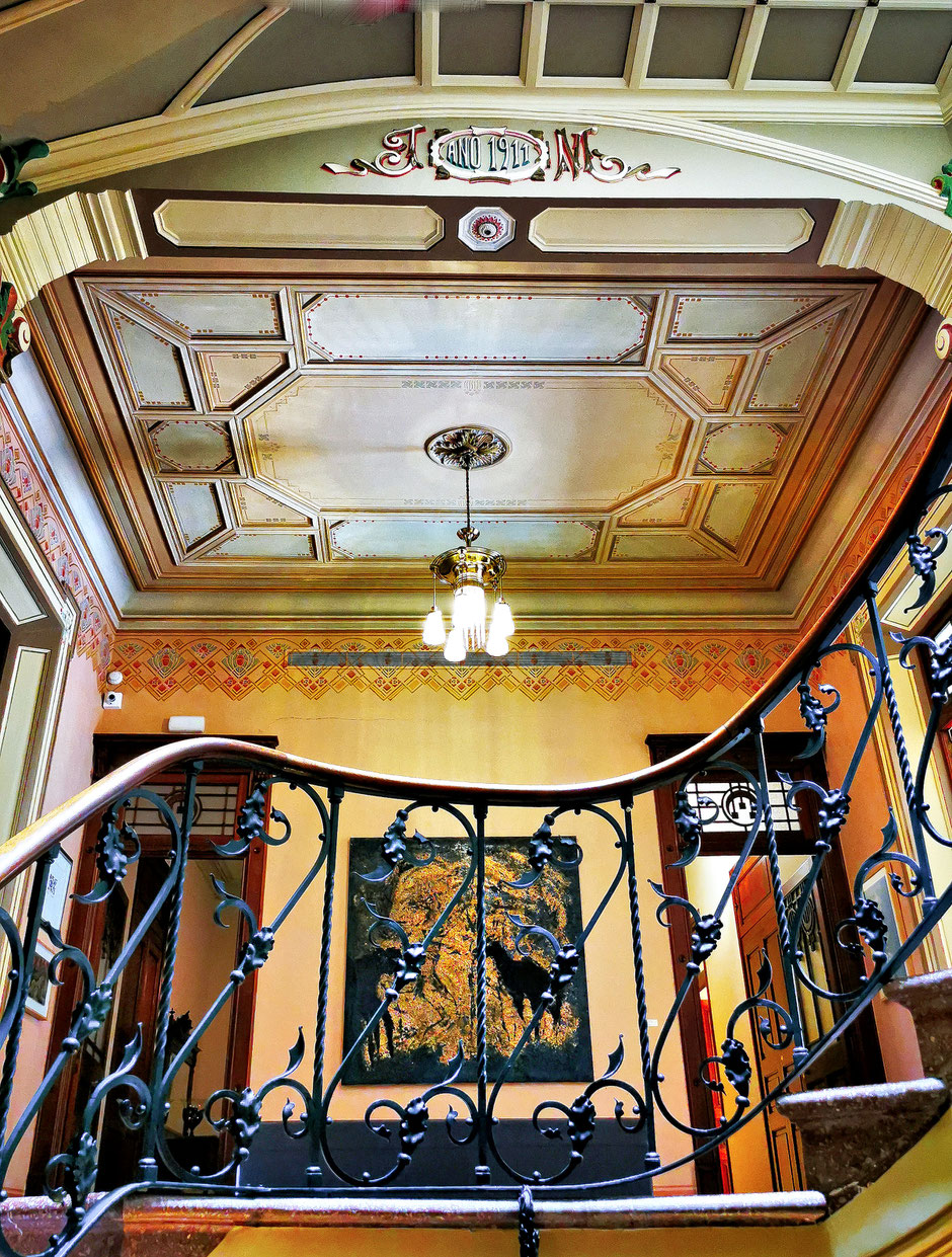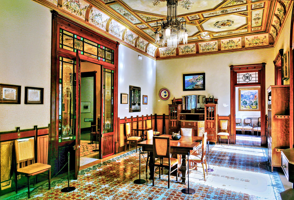 Todo o conjunto artístico, desde a fachada, os móveis (originais), vitrais e o jardim foram cuidadosamente organizados. Além do mais nos chama muito a atenção os solos de mosaico hidráulico em todo o interior do prédio.